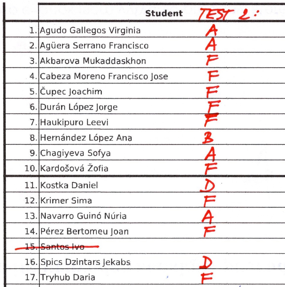 Results of the test: